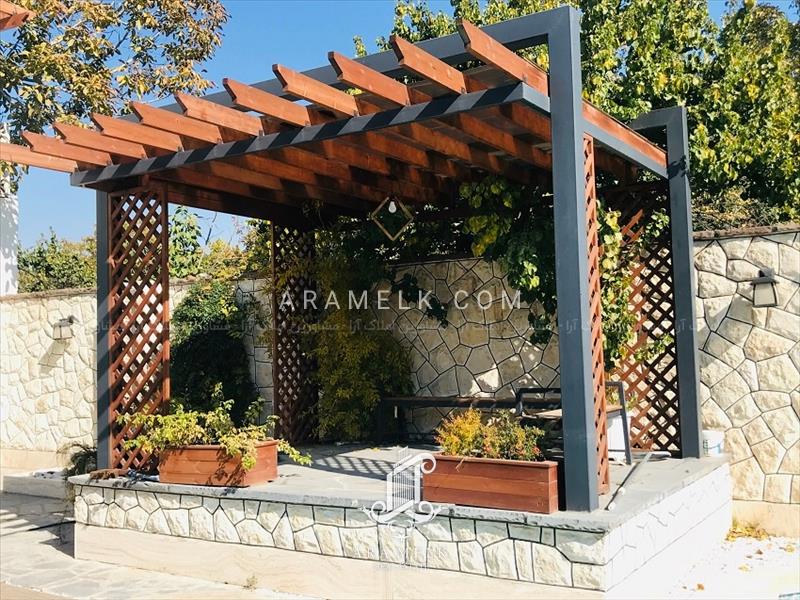 - آلاچیق تمام چوب با چشم انداز باغ ویلا