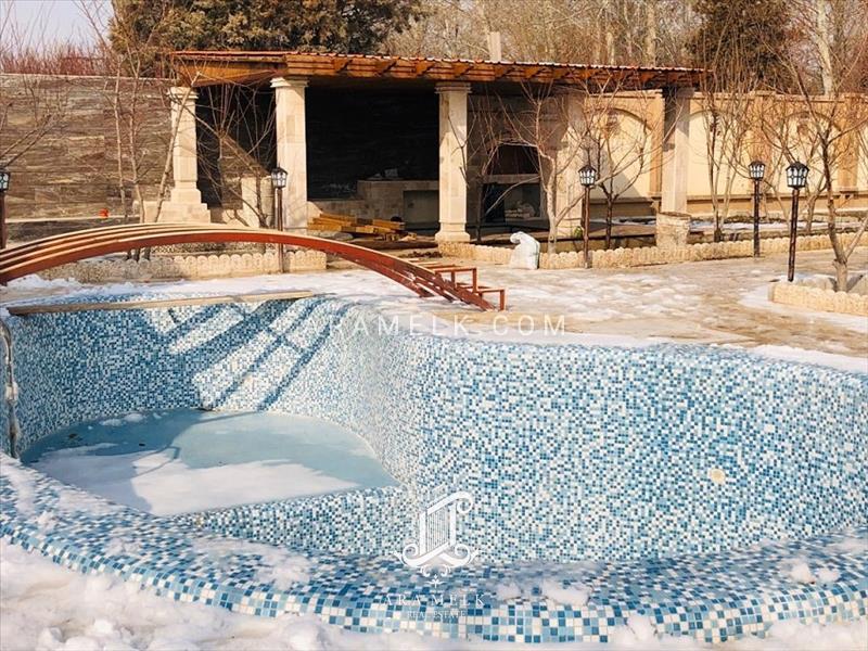 - استخر روباز کاشی کاری شده همراه با موتور خانه مجهز و چهارفصل