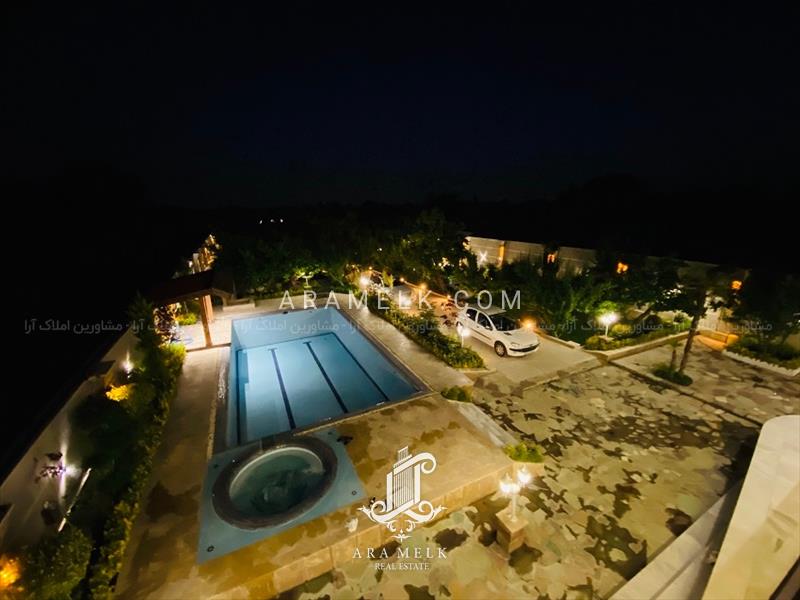 - آبنما و آلاچیق چوبی در دو قسمت باغ با چشم انداز کامل باغ ویلا