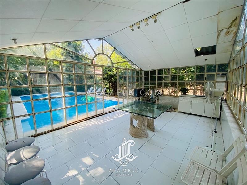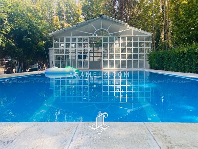 دارای استخر با ابعاد عالی در مجاورت باغ ویلا با تاسیسات مجهز به صورت 4 فصل همچنین وجود یک اتاق شیشه ای در کنار استخر برای رفاه و استفاده بهتر از استخر در طول 4 فصل