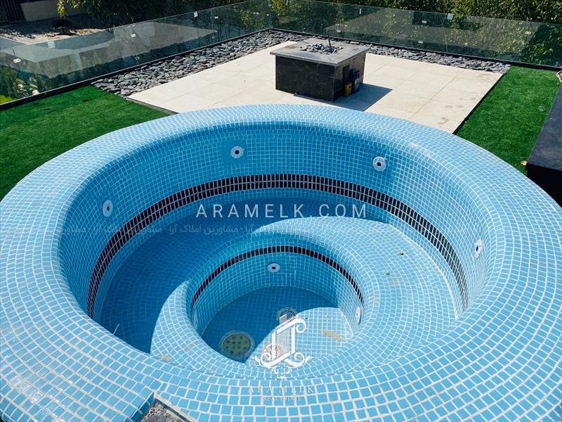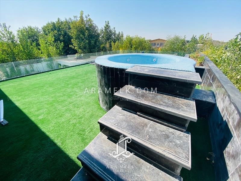 در قسمت محوطه این باغ ویلا شاهد استخر با ابعاد عالی کاشی کاری شده به همراه تاسیسات 4 فصل را دارا می باشد