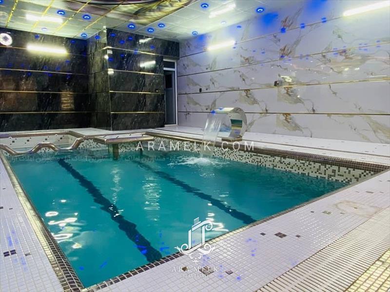 - دارای استخر بزرگ بصورت سرپوشیده با کلیه تجهیزات و موتورخانه چهار فصل و جکوزی