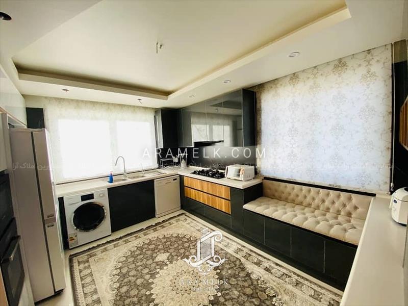 - دارای سالن پذیرایی زیبا و آشپزخانه با کلیه امکانات و کابینت های ممبران , گاز رومیزی , هود لمسی , ماکروفر توکار , یخچال ساید و ماشین لباسشویی