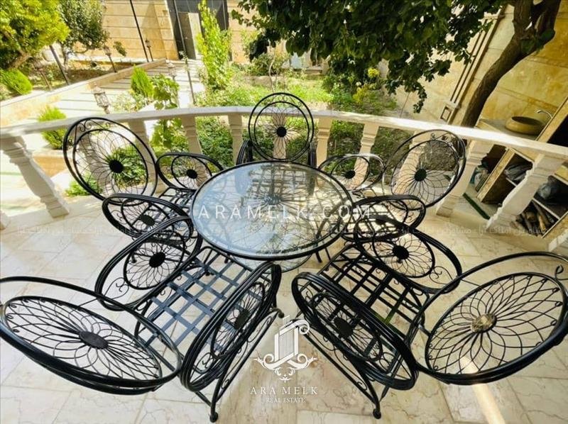 - تراس عالی به همراه مبلمان باغی و چشم انداز زیبا از باغ ویلا