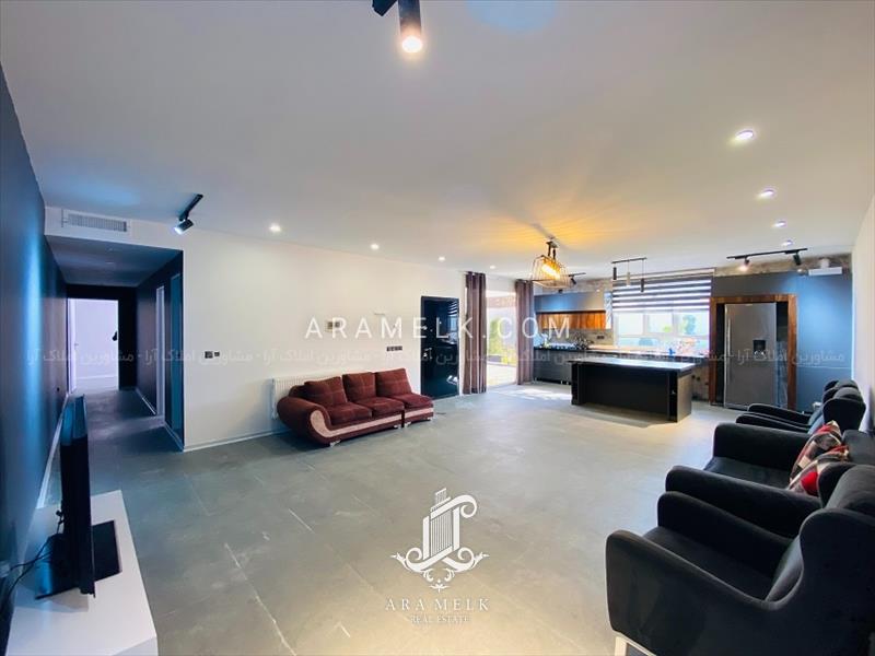 - سالن پذیرایی بزرگ ، آشپزخانه با کابینت های مدرن و زیبا و فرنیشن کامل