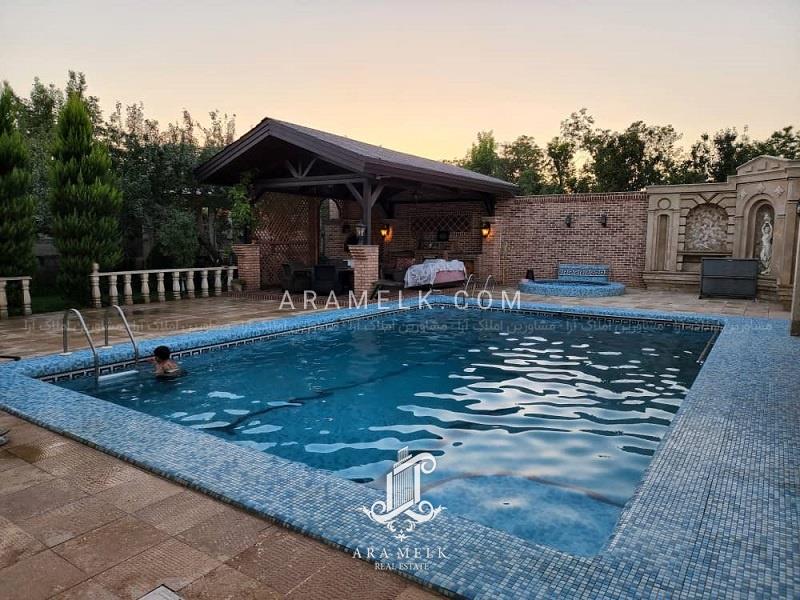 رهن و اجاره سالانه باغ ویلا لوکس و زیبا به مساحت 1500 متر در دهکده ویلایی کردزار شهریار در بهترین لوکیشن با امنیت بالا که قابل سکونت دائم میباشد